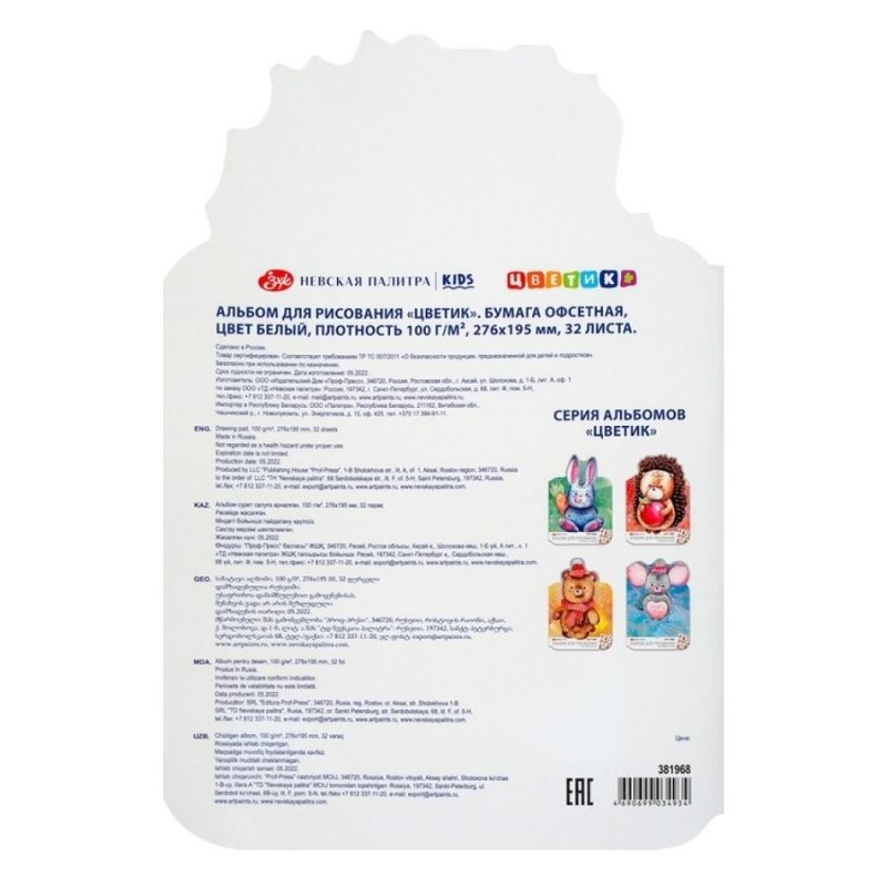 Альбом для рисования ЗХК "Цветик" "Ёжик" с наклейками, 32 л., А4, на скрепке