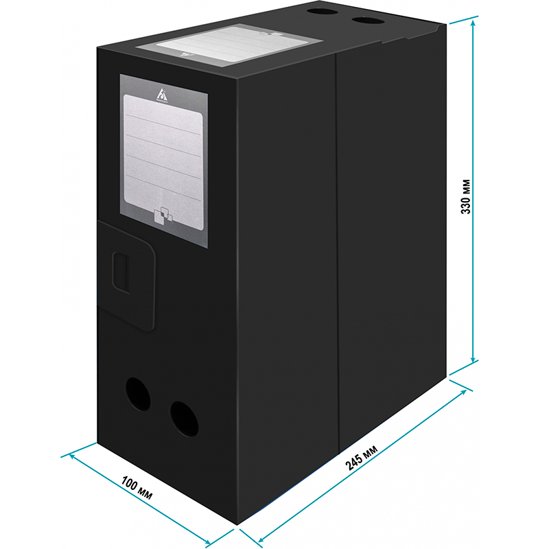 Архивный короб Бюрократ, вырубная застежка, 330x100x245 мм, 800 мкм, пластик, черная