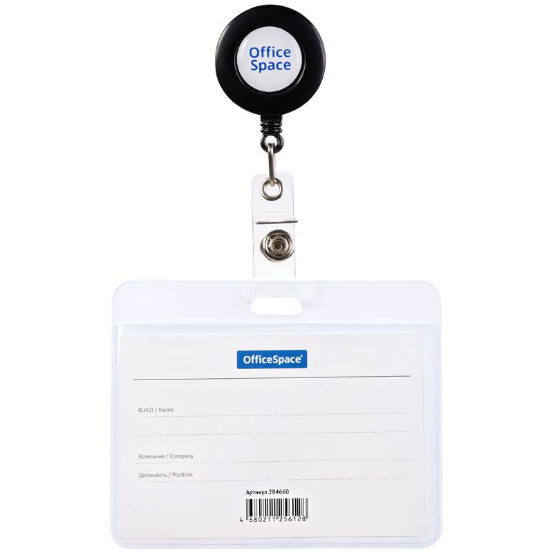Бейдж горизонтальный OfficeSpace, 100х80 мм (размер вставки 90х60 мм), держатель-рулетка, черный