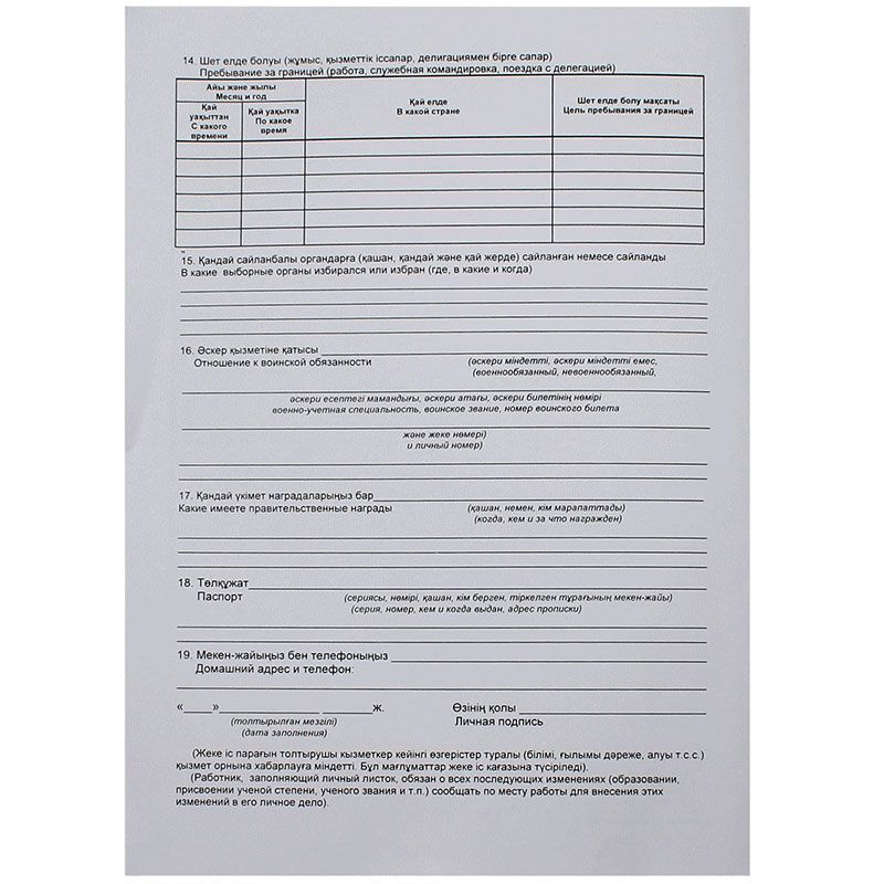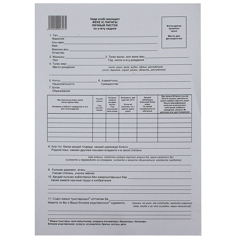 Бланк "Личный листок по учету кадров" А4, 1 слой, 1 лист