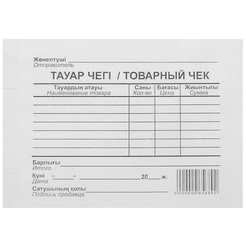 Бланк "Товарный чек", А6, 1 слой, 100 штук в пачке