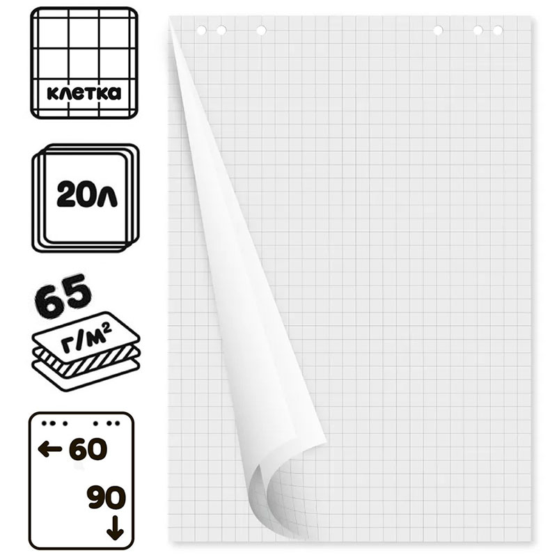 Блок бумаги для флипчарта OfficeSpace 60х90 см, в клетку, 20 листов/рул