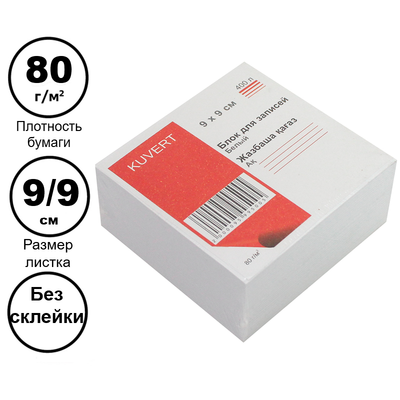 Блок для записей KUVERT белый 9х9 см, 400 листов
