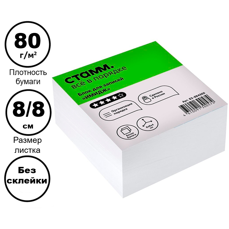 Блок для записей СТАММ "Имидж", белый 8х8х4 см