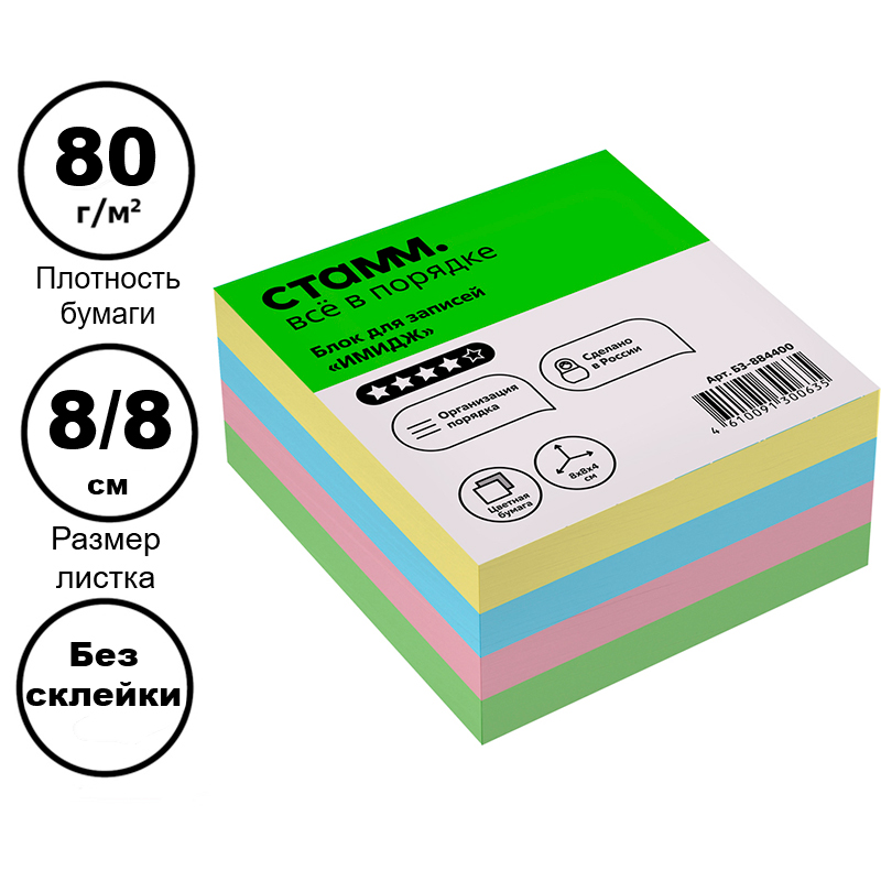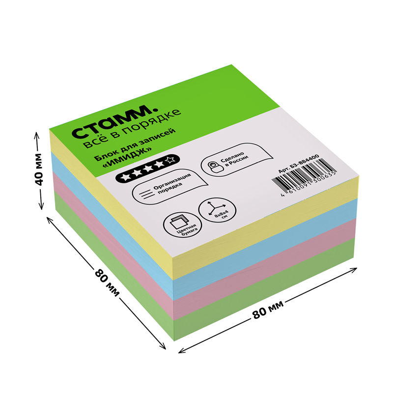 Блок для записей СТАММ "Имидж", цветной 8х8х4 см