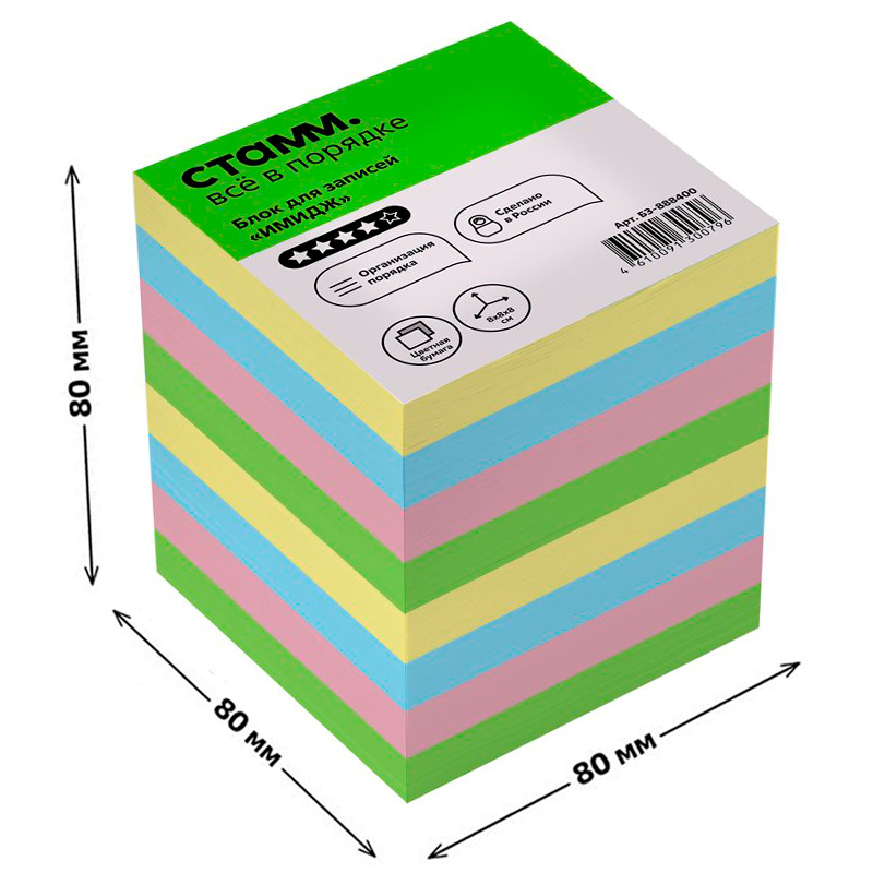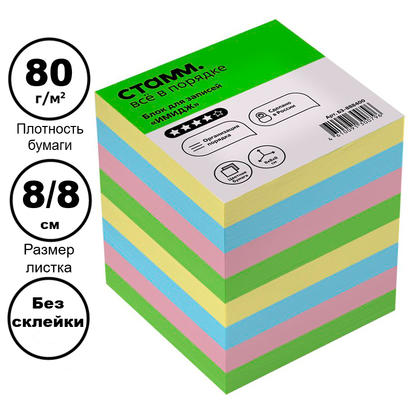 Блок для записей СТАММ "Имидж" цветной 8х8х8 см