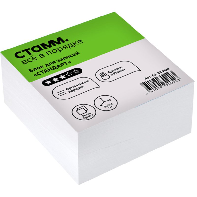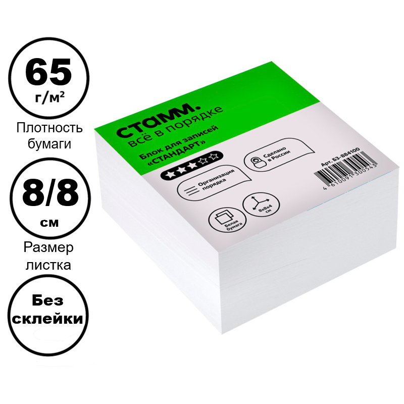 Блок для записей СТАММ "Стандарт" белый 8х8х4 см
