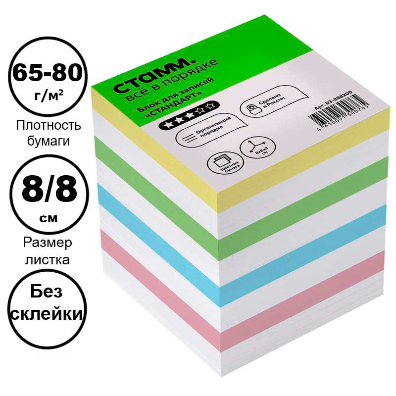 Блок для записей СТАММ "Стандарт" цветной 8х8х8 см