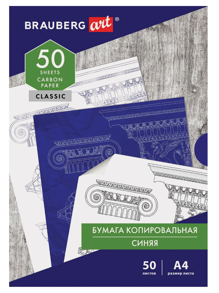 Бумага копировальная (копирка) синяя А4, 50 листов, Brauberg Art "Classic", 112402