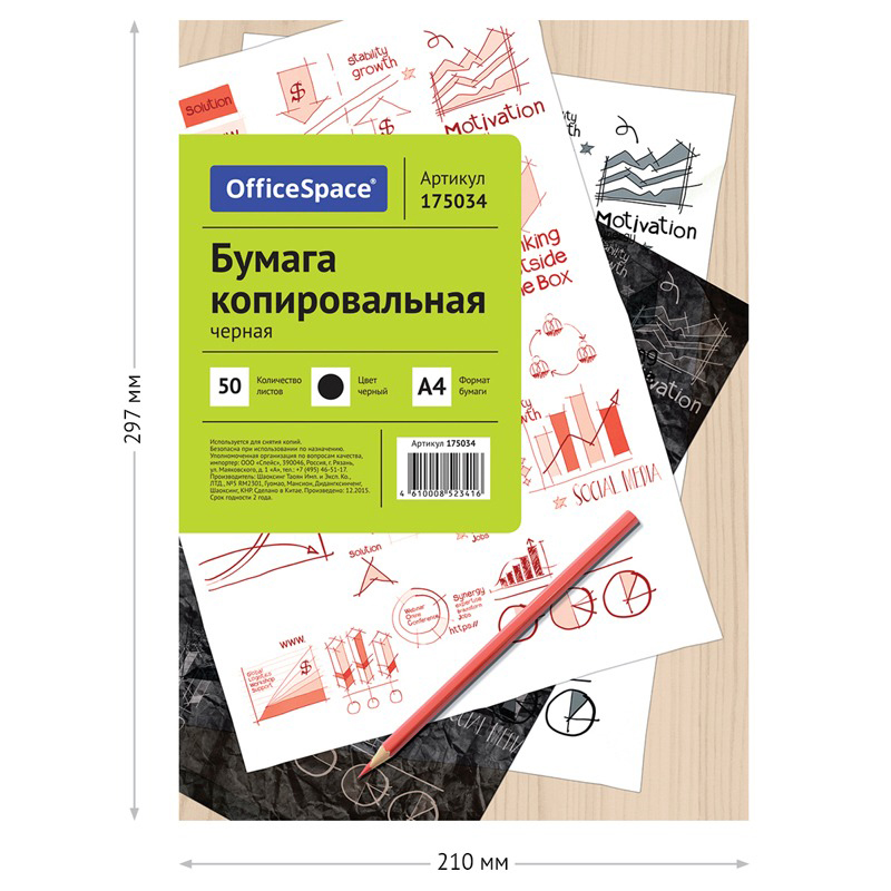 Бумага копировальная "OfficeSpace", А4, черная, 50 листов
