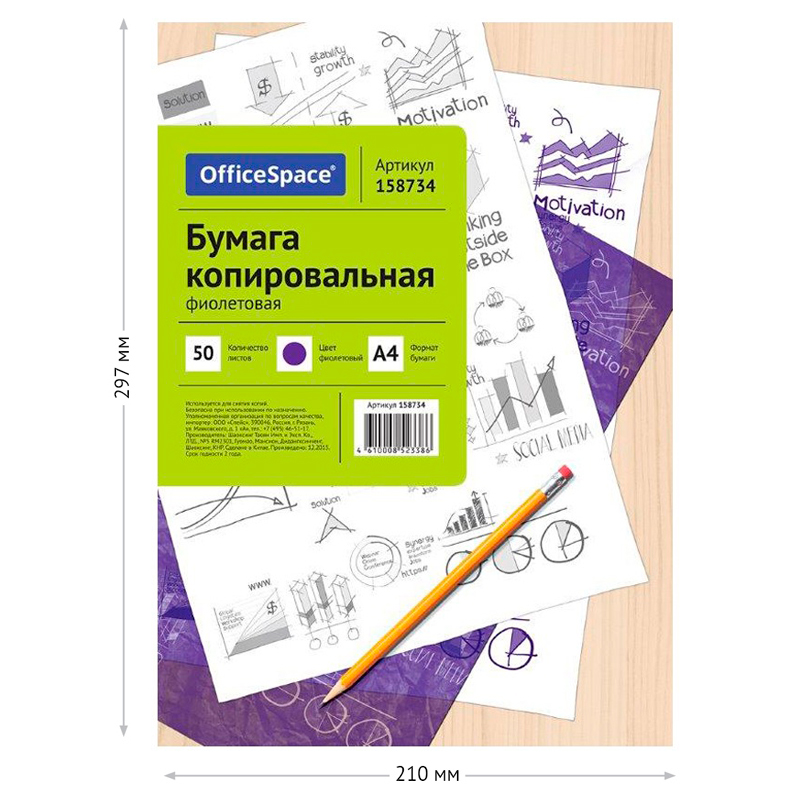 Бумага копировальная "OfficeSpace", А4, фиолетовая, 50 листов