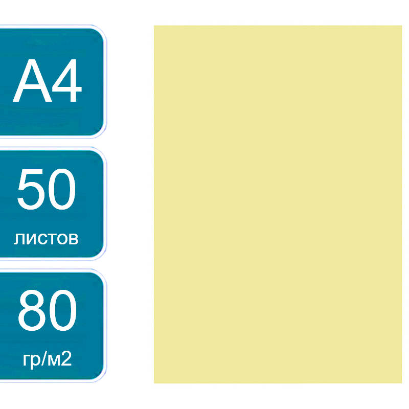 Бумага цветная OfficeSpace Pale, А4, 80 г/кв.м., 50 л., желтая