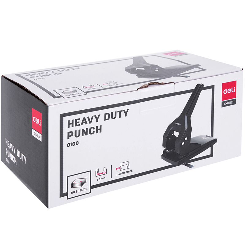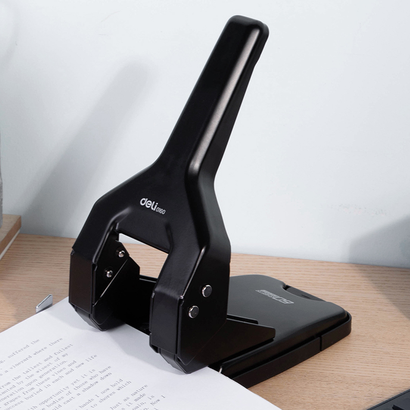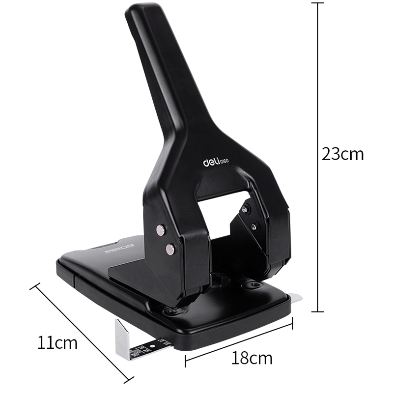 Дырокол DELI "0160", до 60 листов, металлический корпус, черный