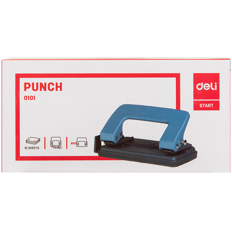 Дырокол DELI до 10 листов, металлический корпус, с линейкой