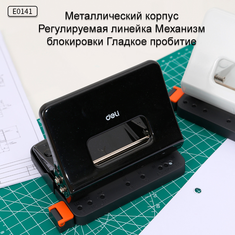 Дырокол DELI до 15 листов, металлический корпус, черный