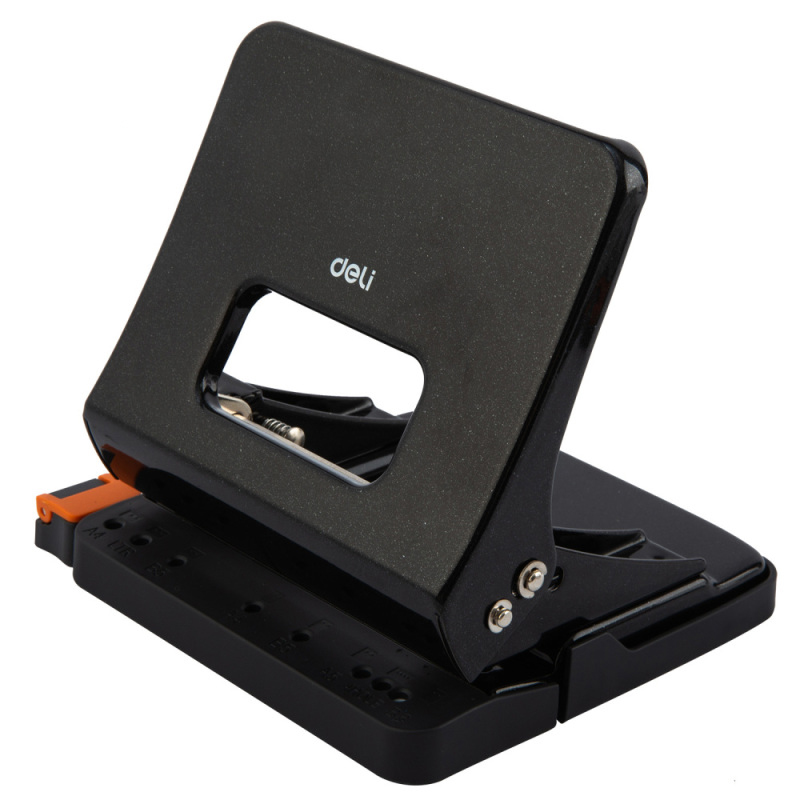Дырокол DELI, до 25 листов, металлический корпус, черный