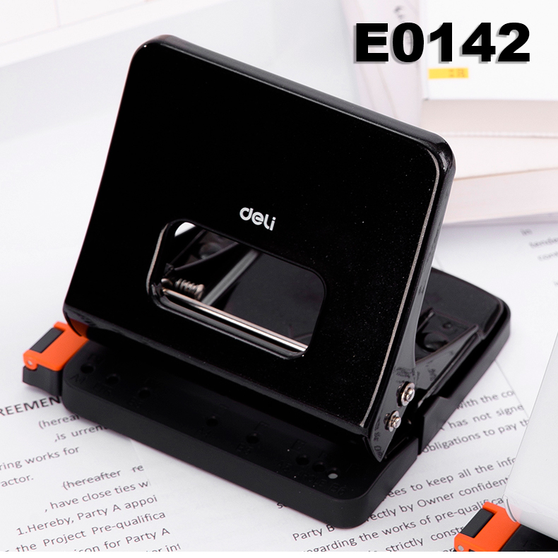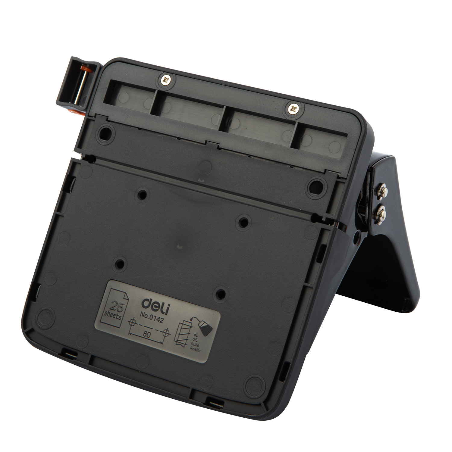 Дырокол DELI, до 25 листов, металлический корпус, черный