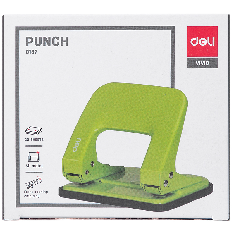 Дырокол DELI "E0137", до 20 листов, металлический корпус