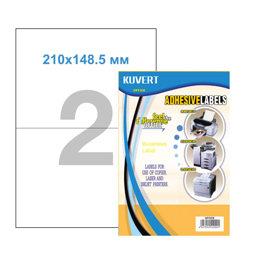 Этикетки самоклеящиеся KUVERT, А4, 210 х 148 мм., 2 шт/лист, 100 л.