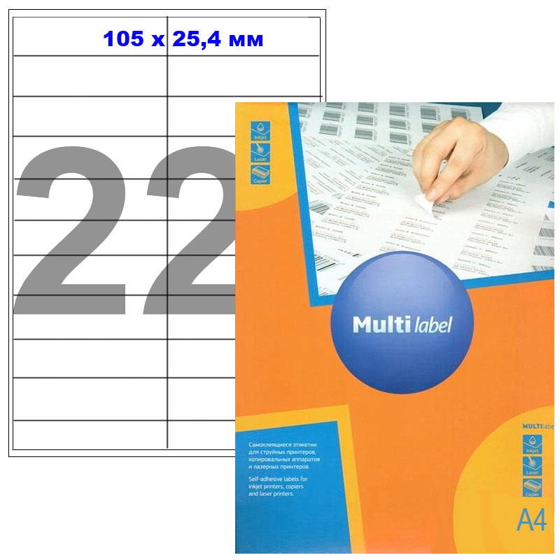 Этикетки самоклеящиеся Multilabel, А4, 105 х 25,4 мм., 22 шт/лист, 100 л.