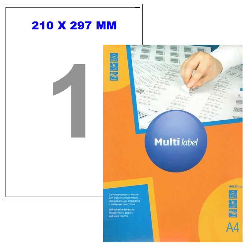Этикетки самоклеящиеся Multilabel, А4, 210 х 297 мм., 1 шт/лист, 100 л.