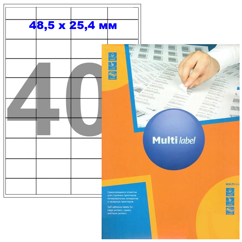 Этикетки самоклеящиеся Multilabel, А4, 48,5 х 25,4 мм., 40 шт/лист, 100 л.