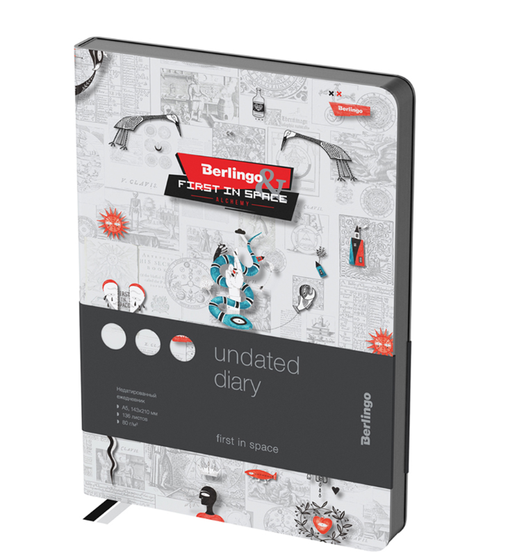 Стильный недатированный ежедневник Berlingo First in Space формата A5 с черным контрастным срезом и ультрамягкой обложкой из высококачественной экокожи. Яркий дизайн в коллаборации с модным брендом одежды First in Space. Внутренний блок состоит из 136 листов высококачественной кремовой бумаги повышенной плотности 80 г/м² с пантонной печатью в 2 краски. Представлен в размере 143 на 210 мм.
