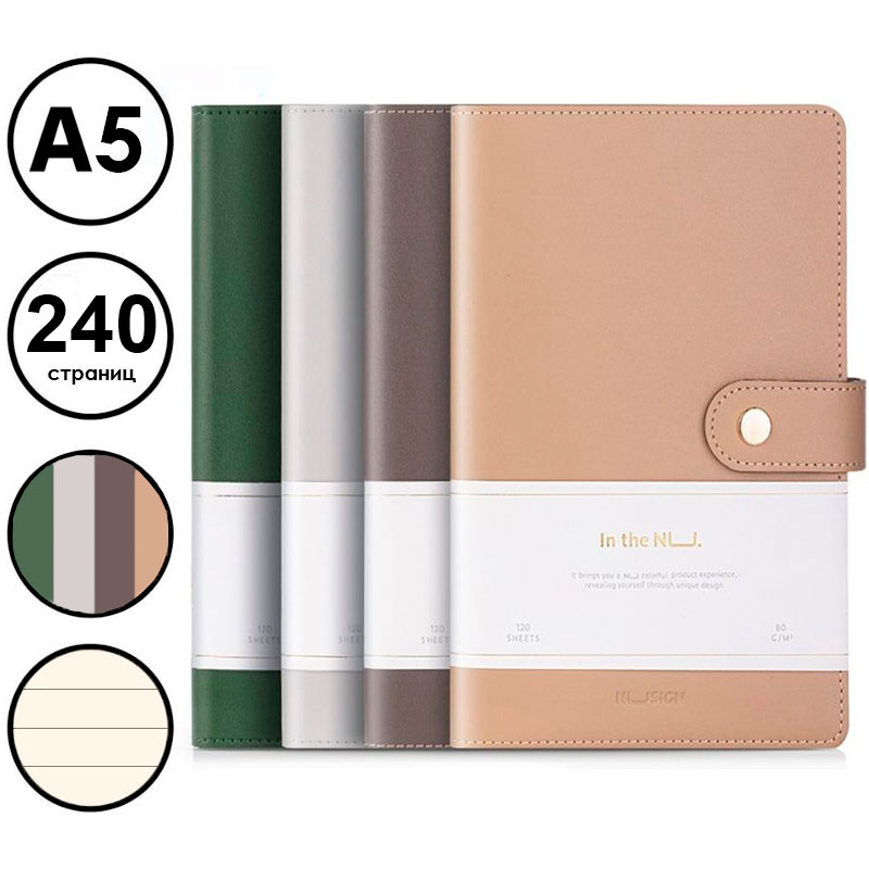 Ежедневник недатированный Deli А5, 240 страниц, кожзам, на кнопке, ассорти