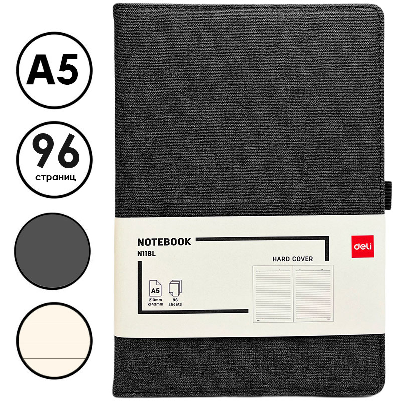 Ежедневник недатированный Deli А5, 96 страниц, 80 г/кв.м., серый
