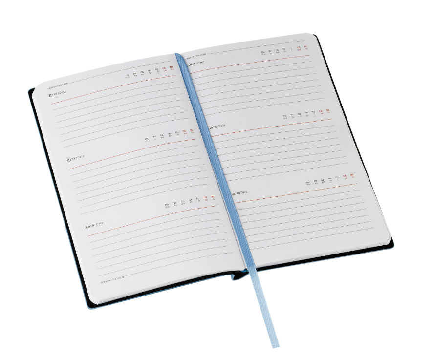 Еженедельник размером 103*176 мм содержит 64 листа высококачественной белой бумаги повышенной плотности 80 г/м2с пантонной печатью в 2 краски. Ориентация – вертикальная.
