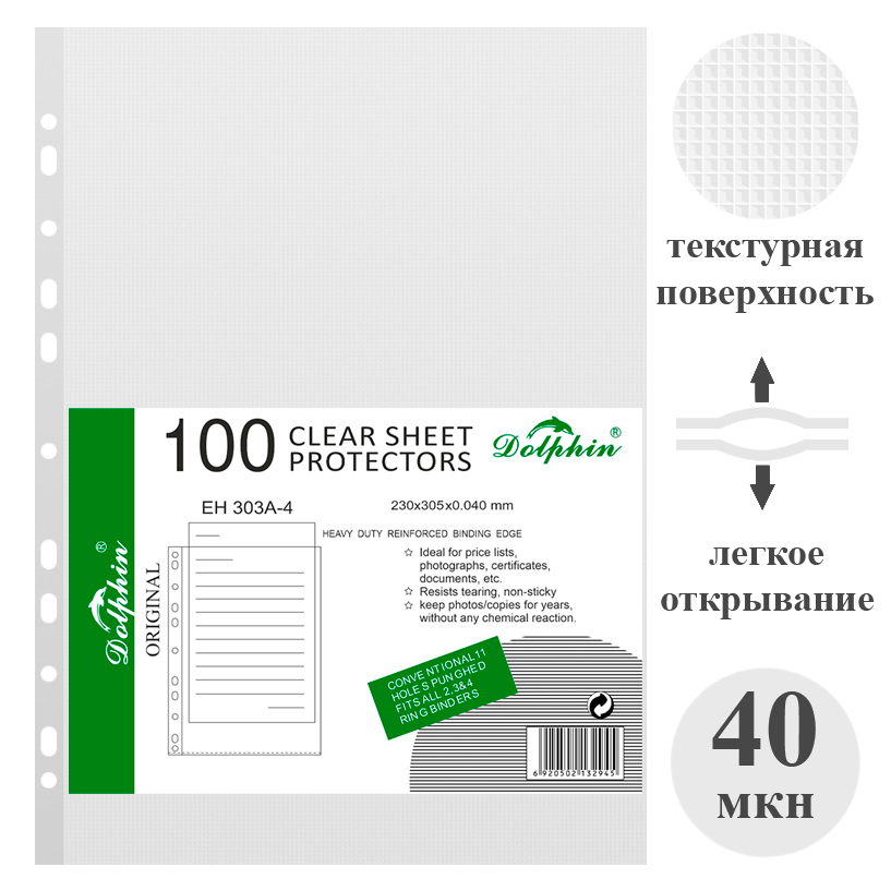 Файл-вкладыш Dolphin А4, 40 мкн 100 штук в упаковке