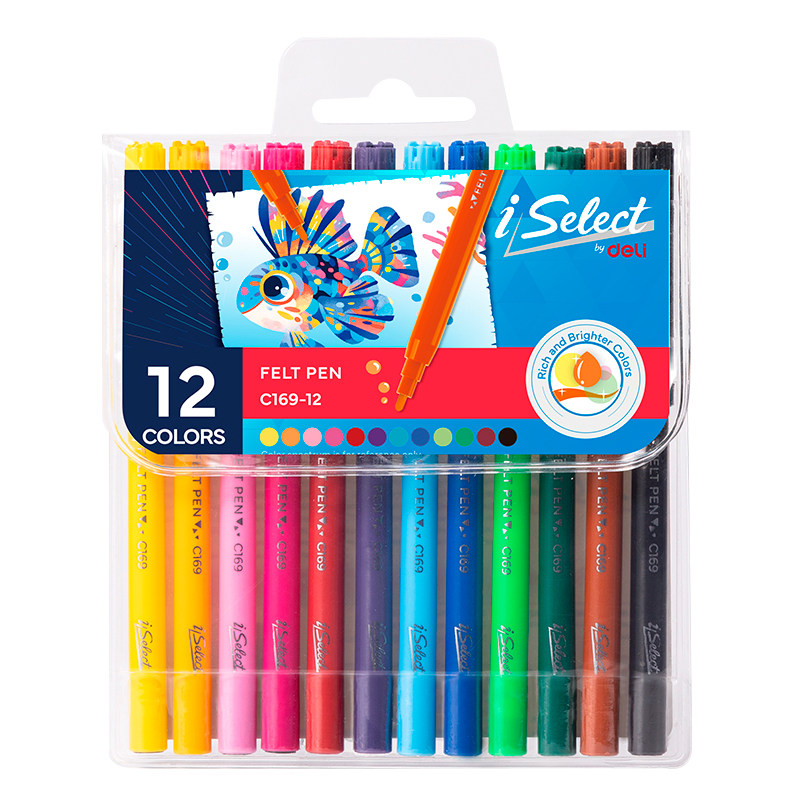 Фломастеры Deli "i Select", 12 цветов, PVC упаковка, европодвес
