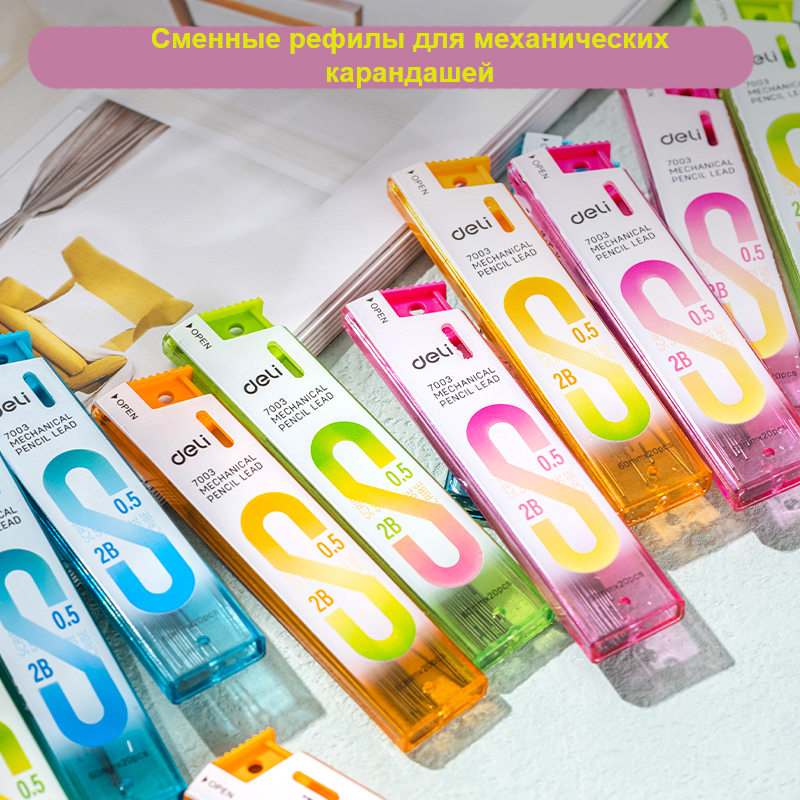 Грифели DELI для механических карандашей, 0,5 мм, 2В