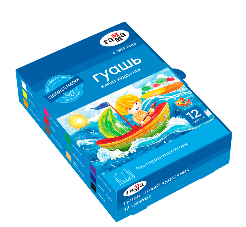 Гуашь Гамма "Юный художник NEW", 12 цветов, 17,5мл, картон. упаковка 221008