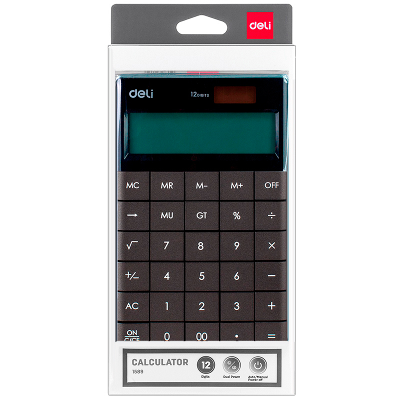 Калькулятор настольный DELI "1589" 12 разрядный, 166х104х15 мм, черный