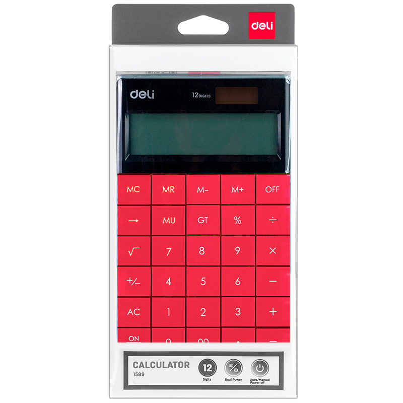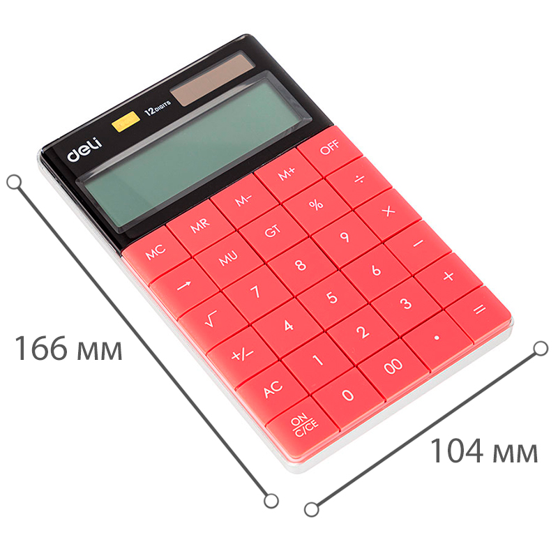 Калькулятор настольный DELI "1589" 12 разрядный, 166х104х15 мм, красный