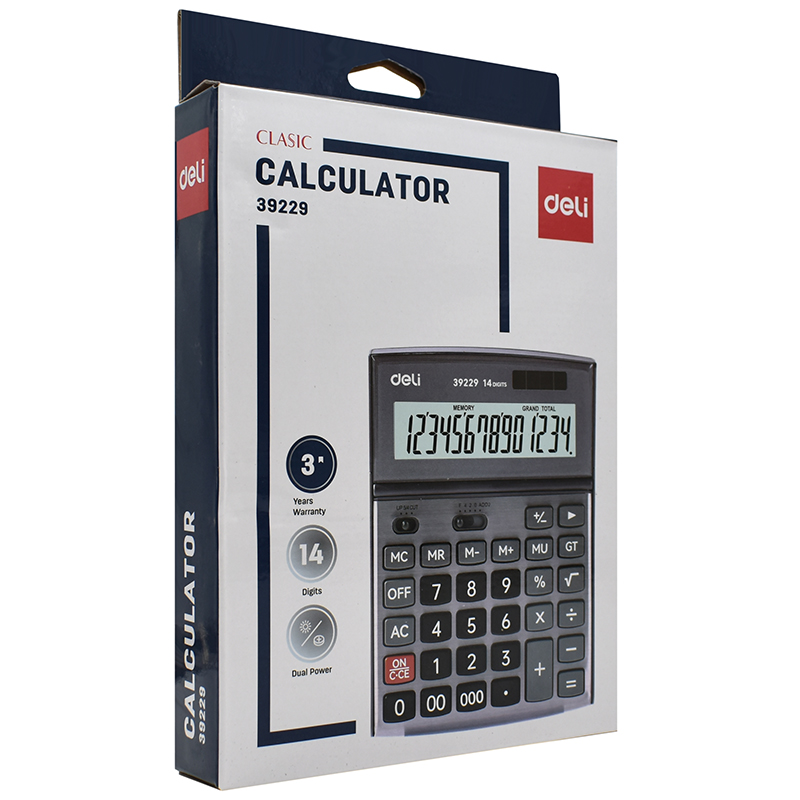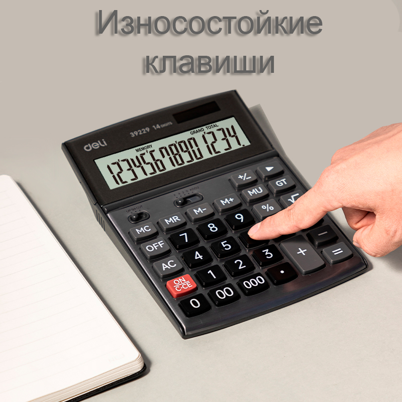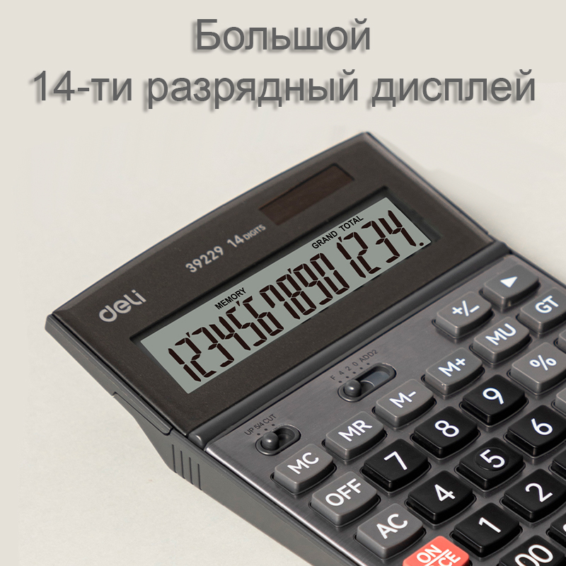 Калькулятор настольный DELI "39229" 14 разрядный, 190х139х37 мм, серый