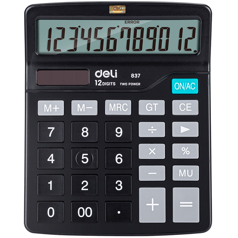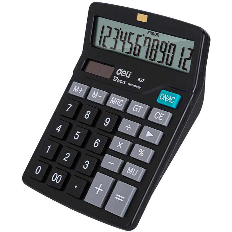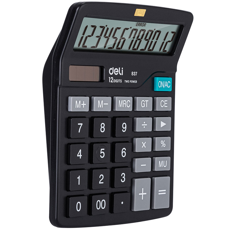 Калькулятор настольный DELI "E837" 12 разрядный, 150х120х52 мм, черный