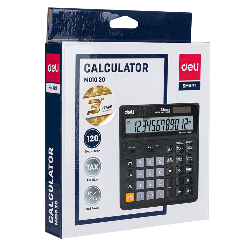 Калькулятор настольный DELI "М01020" 12 разрядный, 160х150х33 мм, черный