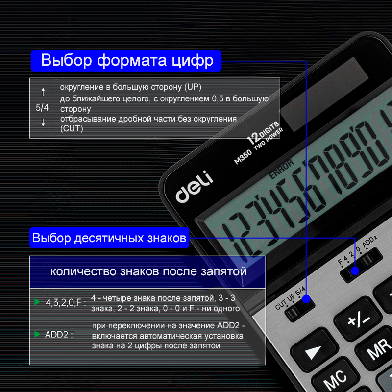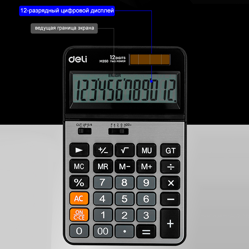 Калькулятор настольный DELI "M350" 12 разрядный, 178х110х26,5 мм, серебро