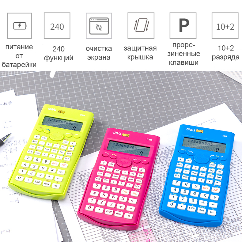 Калькулятор научный DELI "1710", 10+2 разряда, 240 функций, 165х88х23 мм, зеленый
