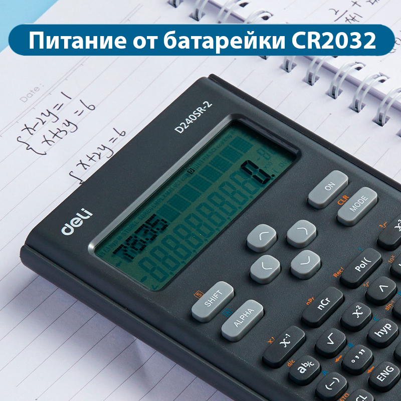 Калькулятор научный DELI D-240SR-2, 10+2 разрядов, 240 функций, 162х82х19 мм,темно серый
