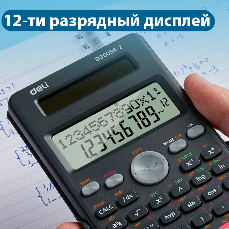 Калькулятор научный DELI D300SR-2, 10+2 разрядов, 300 функций, 172,6х82,7х17,6 мм, темно-серый
