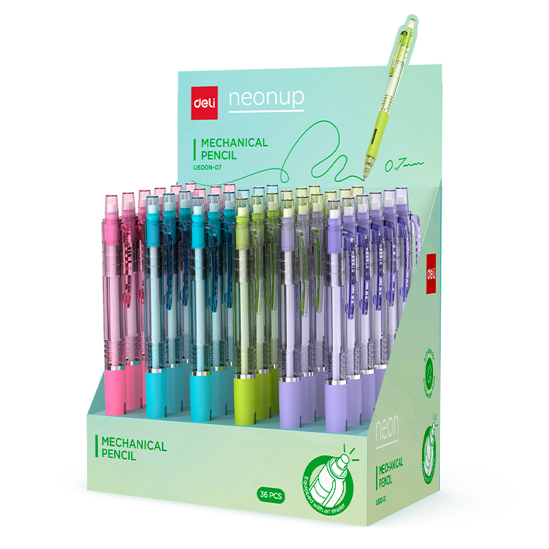 Карандаш механический DELI "Neonup", 0,7 мм, круглый корпус с ластиком, ассорти