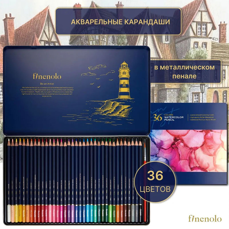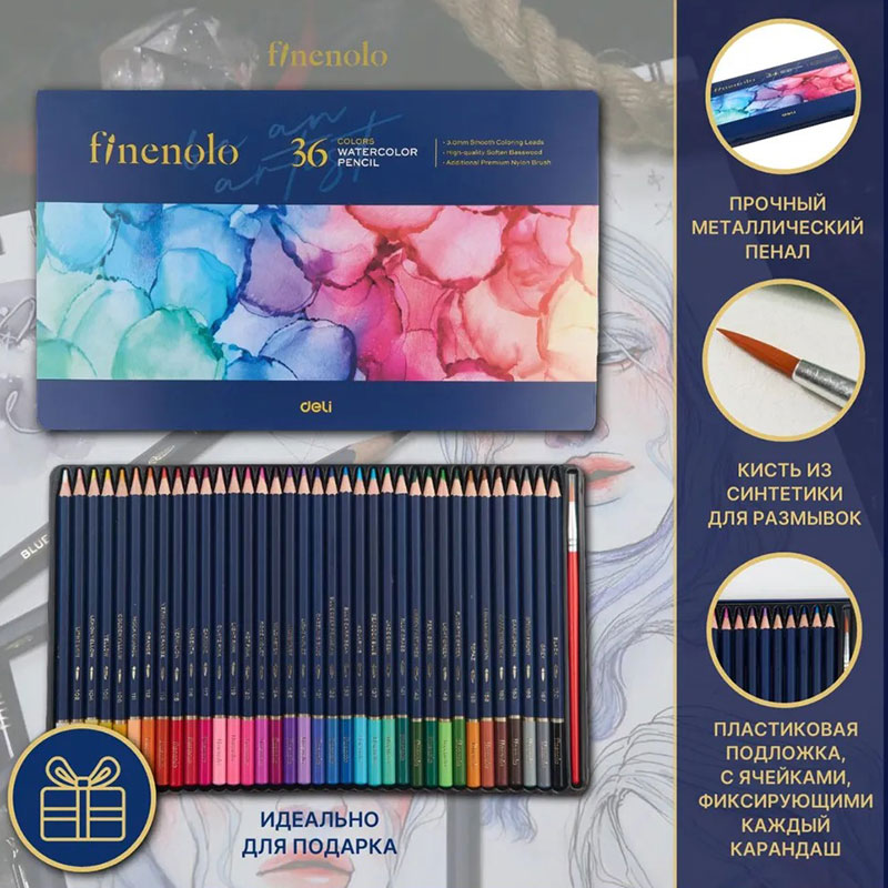 Карандаши акварельные Deli "Finenolo", 36 цветов, в метал. коробке