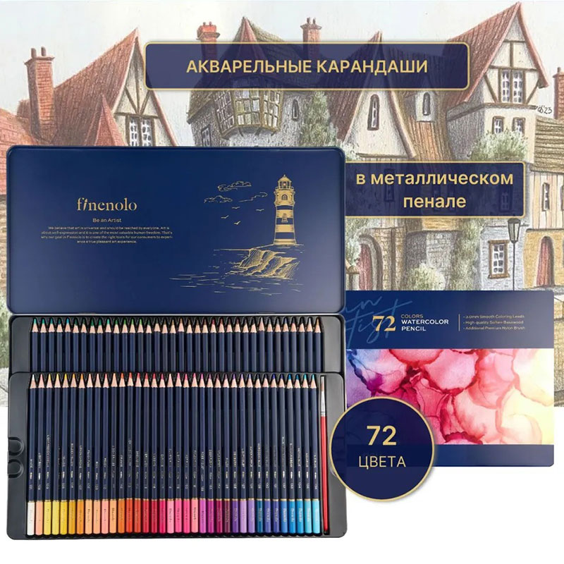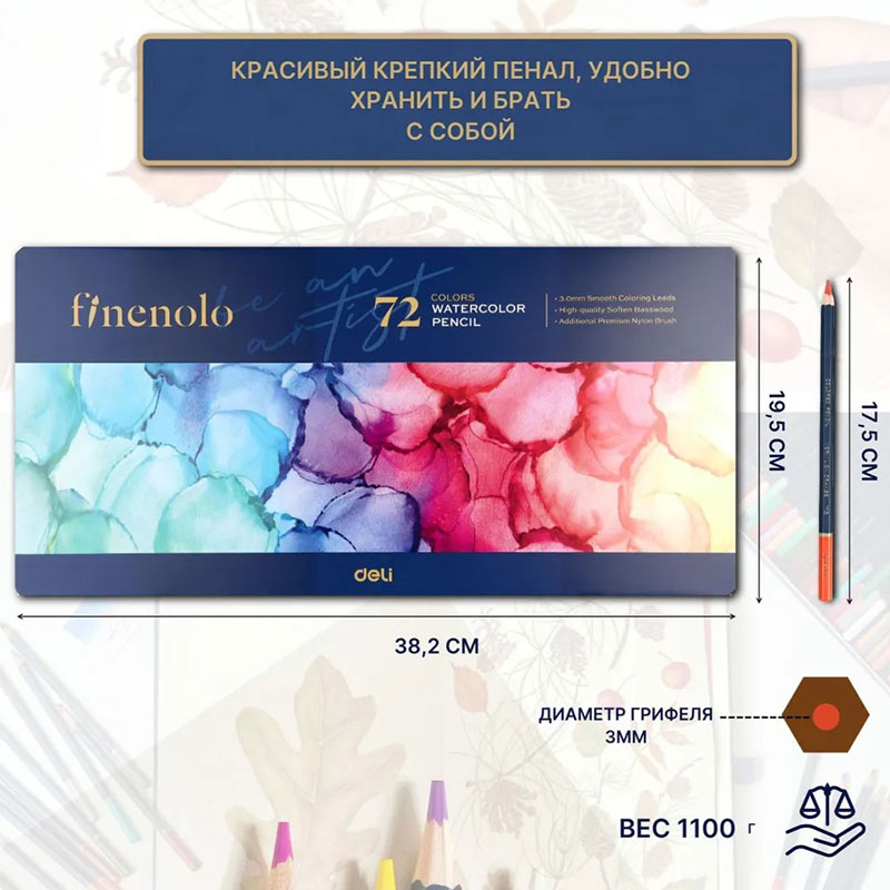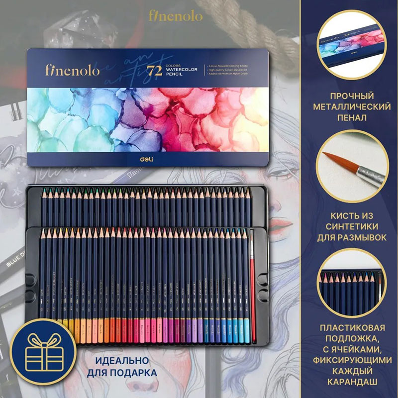 Карандаши акварельные Deli "Finenolo", 72 цвета, в метал. коробке
