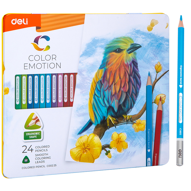 Карандаши цветные Deli "Color Emotion", 24 цвета, дерево, метал. пенал