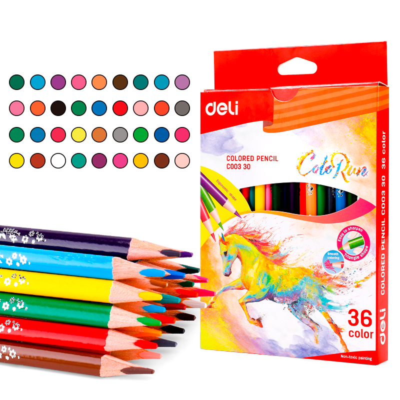 Карандаши цветные Deli "ColoRun", 36 цветов, дерево, картон