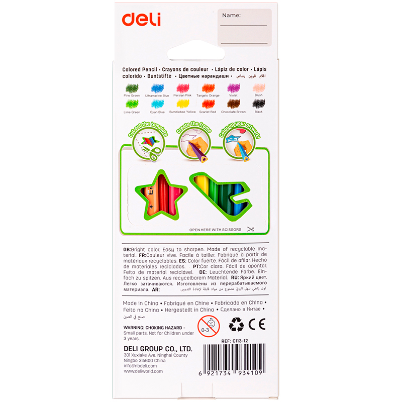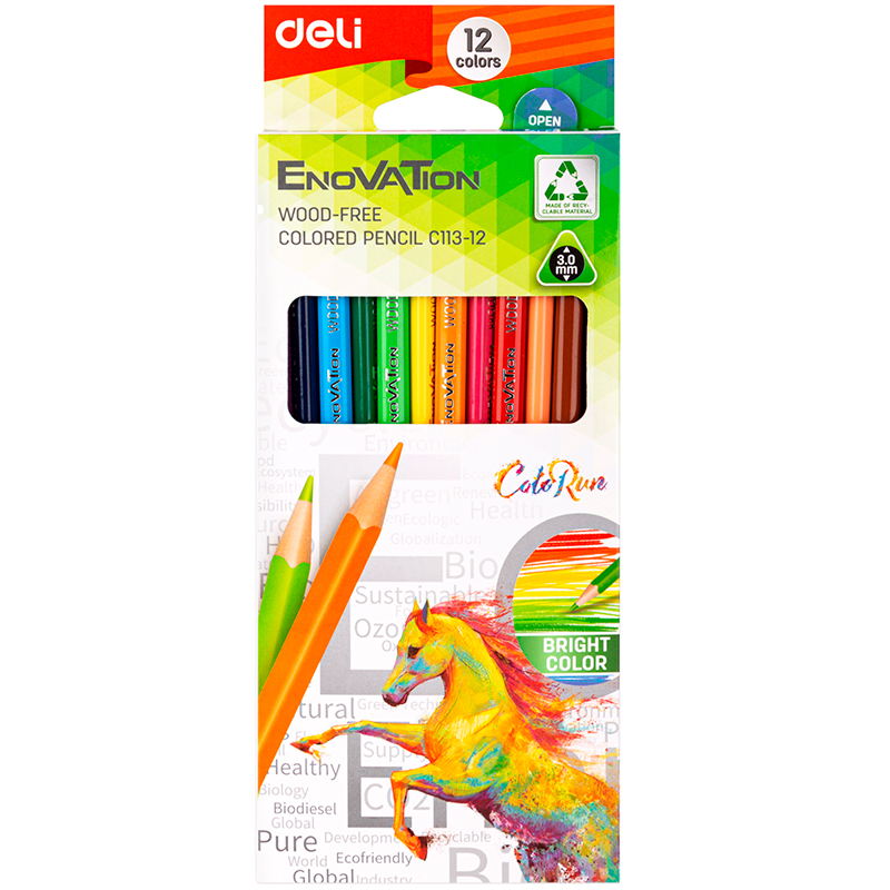 Карандаши цветные Deli "Enovation", 12 цветов, PS, картон