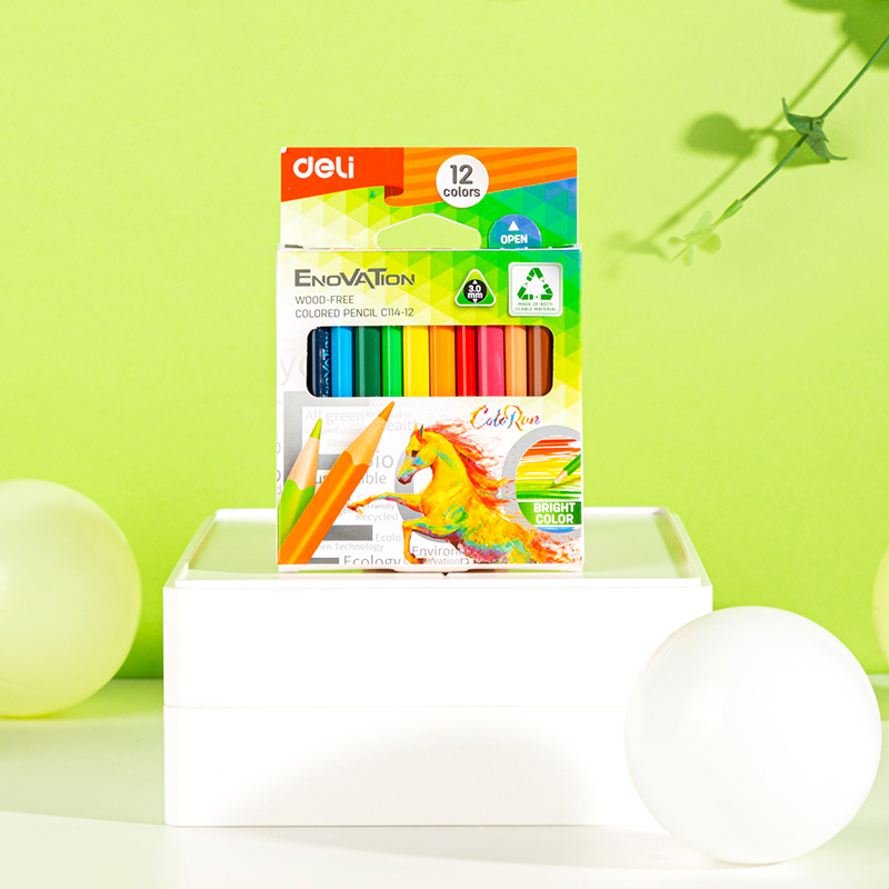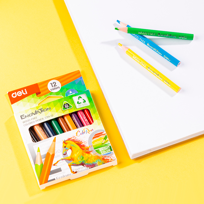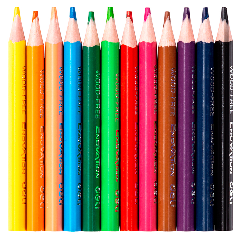 Карандаши цветные Deli "Enovation", короткие, 12 цвета, PS, картон